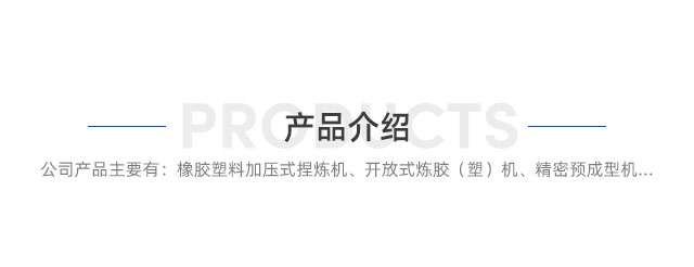 公司產品主要有:橡膠塑料加壓式捏煉機、開放式煉膠(塑)機、精密預成型機、自動橡膠過濾機、壓延機、切膠機、密煉生產線、擠出生產線、壓延生產線等。產品主要用于輪胎行業、密封件行業、膠管膠帶行業、電纜行業、醫用瓶塞行業、EVA、PVC等,產品廣泛用于橡膠電子零件、汽車零件、導電橡膠、工業用油封、油圈、運動器材、醫療器械及各式器皿等各種領域。